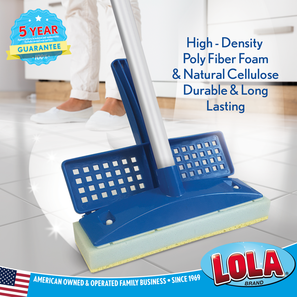 Natural Cellulose Squeeze Sponge Mop, 9" Wide Head w 4 pc threaded handle and 3 Replacement Heads