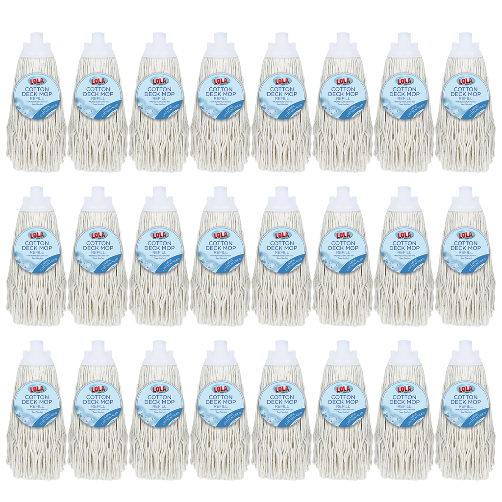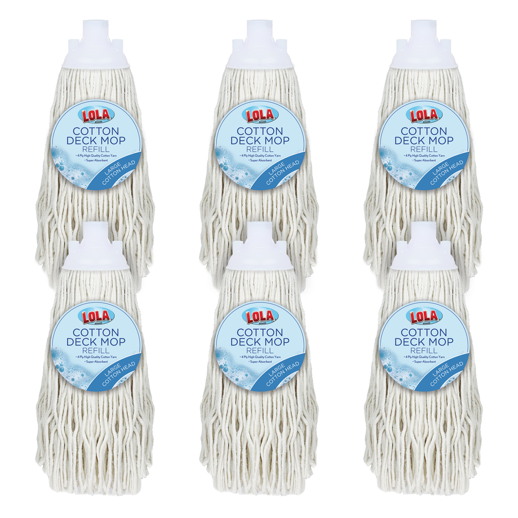 Cotton Deck Mop Refills by Lola are manufactured keeping in mind that we want our users to have an easy time replacing heads onto the original handle and of course equal craftsmanship to the original cotton mop purchased. We appreciate use and re-use of our products and include a limited 5 Year Warranty (excluding normal wear and tear) on all our original mop with handle purchases. Customers have been trusting Lola since 1969 where we have been aiding consumers in cleaning their homes and offices better, faster and cost efficiently.