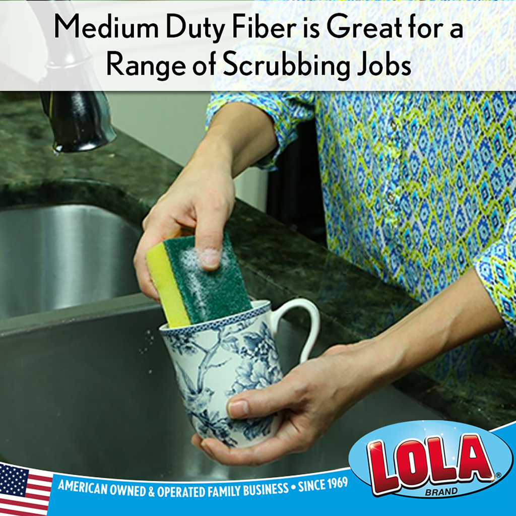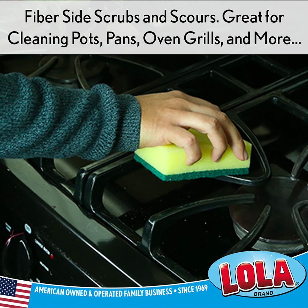 This dual purpose sponge/scourer makes scrubbing and wiping up dishes, etc so easy with one cleaning tool. Lola Brand has been providing high quality but simultaneously affordable cleaning tools for the home since 1969. If you haven't tried LOLA, we ask you give us the opportunity to be your cleaning tools brand into the future, we do all we can to always satisfy our customers.