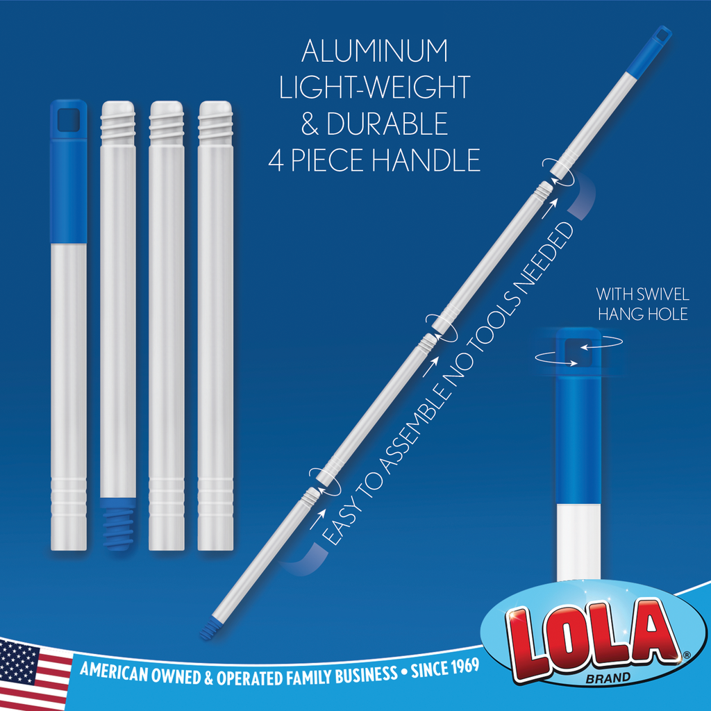 ➤ HANDLE IS HEAVY DUTY ALUMINUM - Handle is a very mighty 4-piece Silver Aluminum handle - which we make super simple to assemble, comes with easy to understand instructions. 4-piece handle saves you money and is more eco-friendly. Aluminum is lighter than steel but stronger than steel - don't be tricked by its ""lighter"" weight, it's a monster - in a good way - it will last a long time and is way more durable than regular plastic floor cleaning mops.